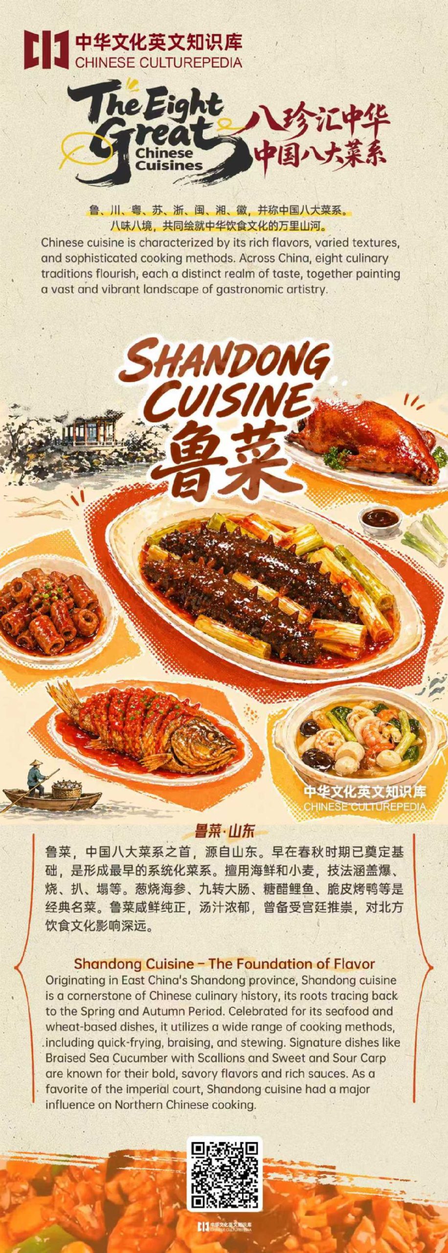 Този първомайски празник се впуснете в едно ароматно пътешествие из Китай, празник за сетивата. От огнената страст на Съчуан и Хунан до деликатната елегантност на Дзянсу и Джъдзян; от девствената свежест на Гуангдонг и Фуджиан до сърдечната дълбочина на Анхуей и Шандонг – осем различни кулинарни традиции се разгръщат като оживен пейзаж на небцето ви. Всеки вкус нашепва истории за земята и нейните хора, наследство от кулинарна мъдрост, предавано от поколения. Където и да ви отведе ваканцията, оставете това вкусово приключение да ви бъде водач, изследвайки Китай, една незабравима хапка наведнъж, позволявайки на небцето ви да се скита, където сърцето ви желае.