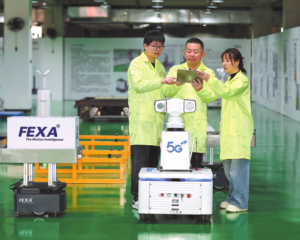 Техници тестват интелигентен робот във високотехнологичен парк във Фуджоу, провинция Фуджиан. XIE GUUIMING/ЗА КИТАЙ ЕЖЕДНЕВНО