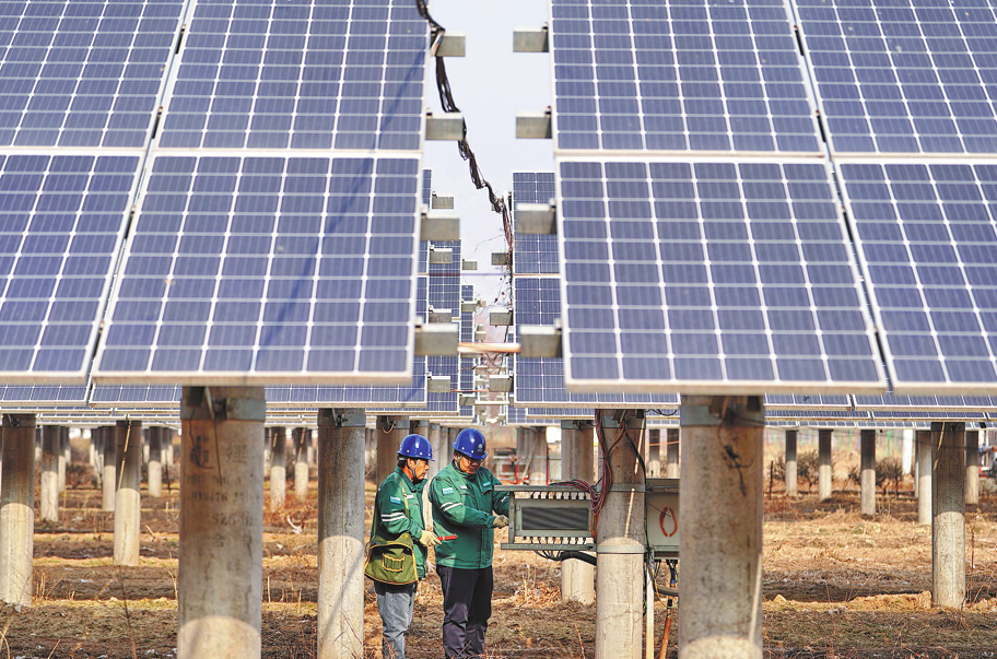 Техници проверяват слънчеви панели в окръг Джулу, провинция Хъбей. ЯН ШИЯО/СИНХУА